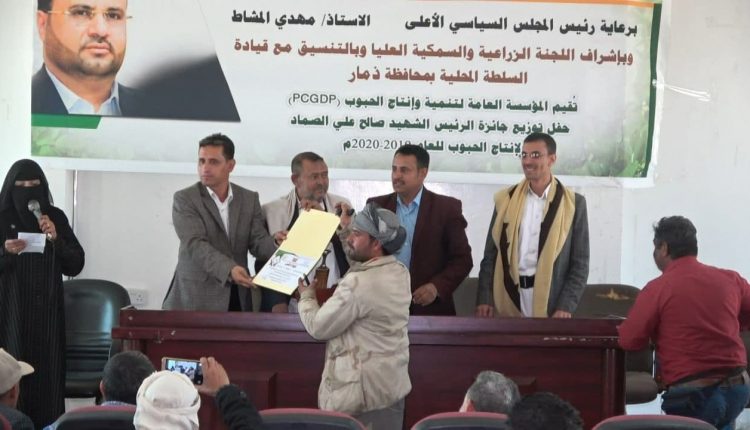 تكريم الفائزين بجائزة الرئيس الشهيد الصماد لإنتاج الحبوب بذمار