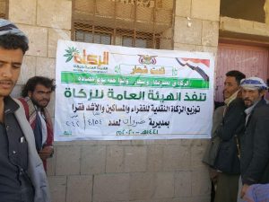 تواصل توزيع الزكاة للفقراء والمساكين بمديرية ضوران محافظة ذمار.