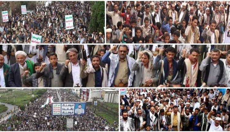 توافد عشرات الألاف من أبناء ووجهاء وأعيان محافظة إب، اليوم الجمعة إلى 47 ساحة في مسيرات جماهيرية تضامناً مع فلسطين تحت شعار “انتصاراً لغزة ماضون في المرحلة الخامسة من التصعيد”.