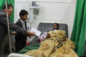 زيارة لجرحى الجيش واللجان الشعبية من قبل تربوي وطلاب وطالبات مدرستي القمه والرواد الاهليه بذمار.