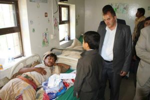 وقد قدم الزائرين الهدايا الرمزيه والعينيه وكذلك مبالغ مالية متواضعة معتبرين أن هذا اقل القليل يقدم لهم وقراءه الفاتحة شفاء للجرحى ورحمه للشهداء الابرار.