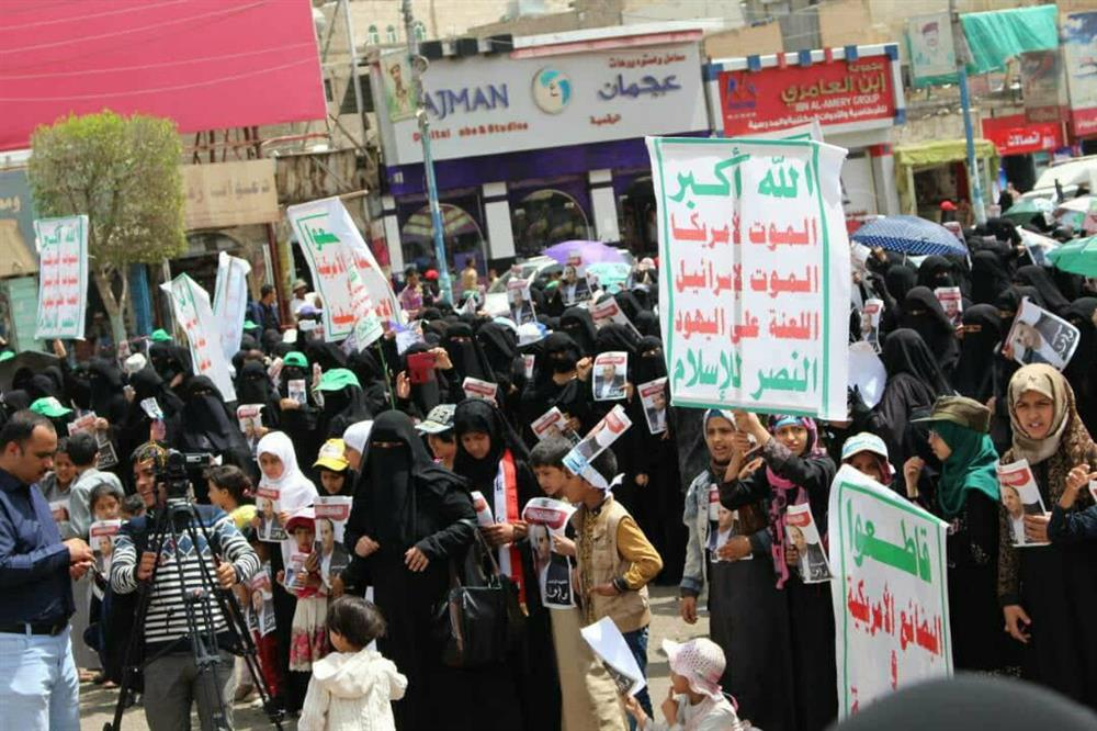 شهد ميدان التحرير بأمانة العاصمة اليوم مسيرة نسائية حاشدة تحت شعار” يد تحمي ويد تبني” للتنديد باستهداف طيران العدوان السعودي الأمريكي للرئيس صالح الصماد وهو يؤدي واجبه الوطني بمحافظة الحديدة.