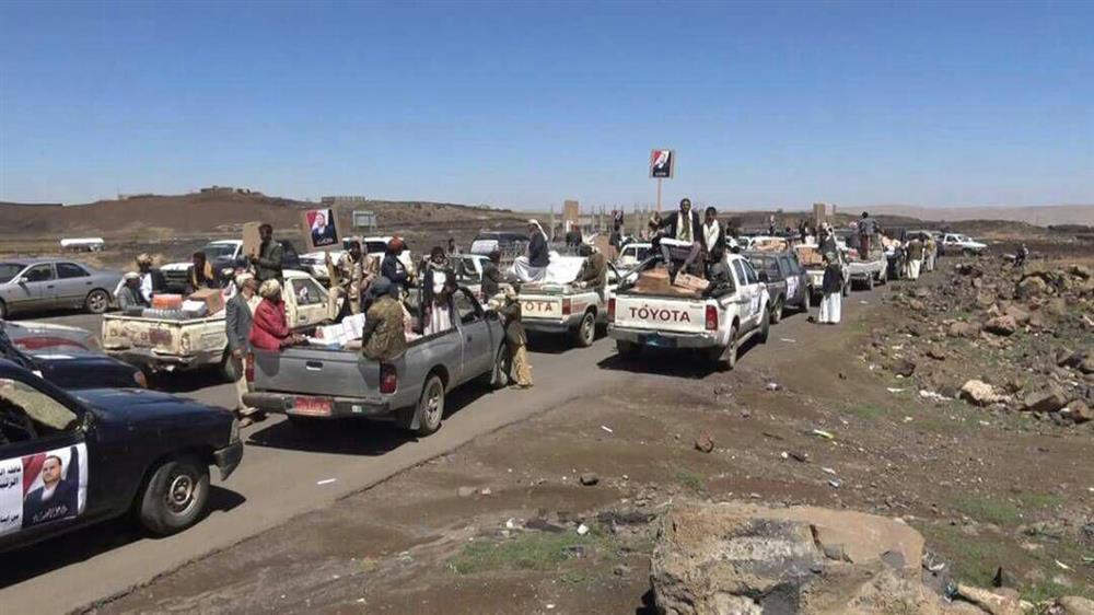مسيرة وقافلة غذائية لأبناء منطقة ذيفان بمحافظة عمران.(صور)