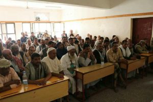 واستعرض خلال اللقاء الذي ضم قيادة السلطة المحلية وأعضاء المجلس المحلي وقيادات المكاتب التنفيذية والشخصيات الإجتماعية، جهود قيادة السلطة المحلية في تلبية الإحتياجات الإنسانية خاصة في ظل تزايد حركة النزوح للمديرية من مختلف المحافظات.
