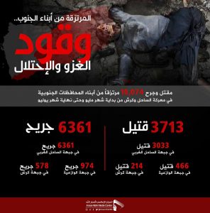 انفوجرافيك | إحصائية قتلى وجرحى المرتزقة من أبناء المحافظات الجنوبية في معركة الساحل و #كرش من بداية شهر مايو وحتى نهاية شهر يوليو