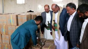 تدشين توزيع 1200 سلة غذائية لنازحي الحديده بمدينة ذمار.(صور)