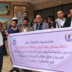 نظم أكاديميون وإدرايون وطلاب جامعة ذمار، اليوم، وقفة احتجاجية مندده باستمرار جرائم العدوان الامريكي السعودي واستهدافه لابناء الشعب اليمني والتي كان اخرها الجريمة المروعة بحق الطلاب في مديرية ضحيان محافظة صعده.