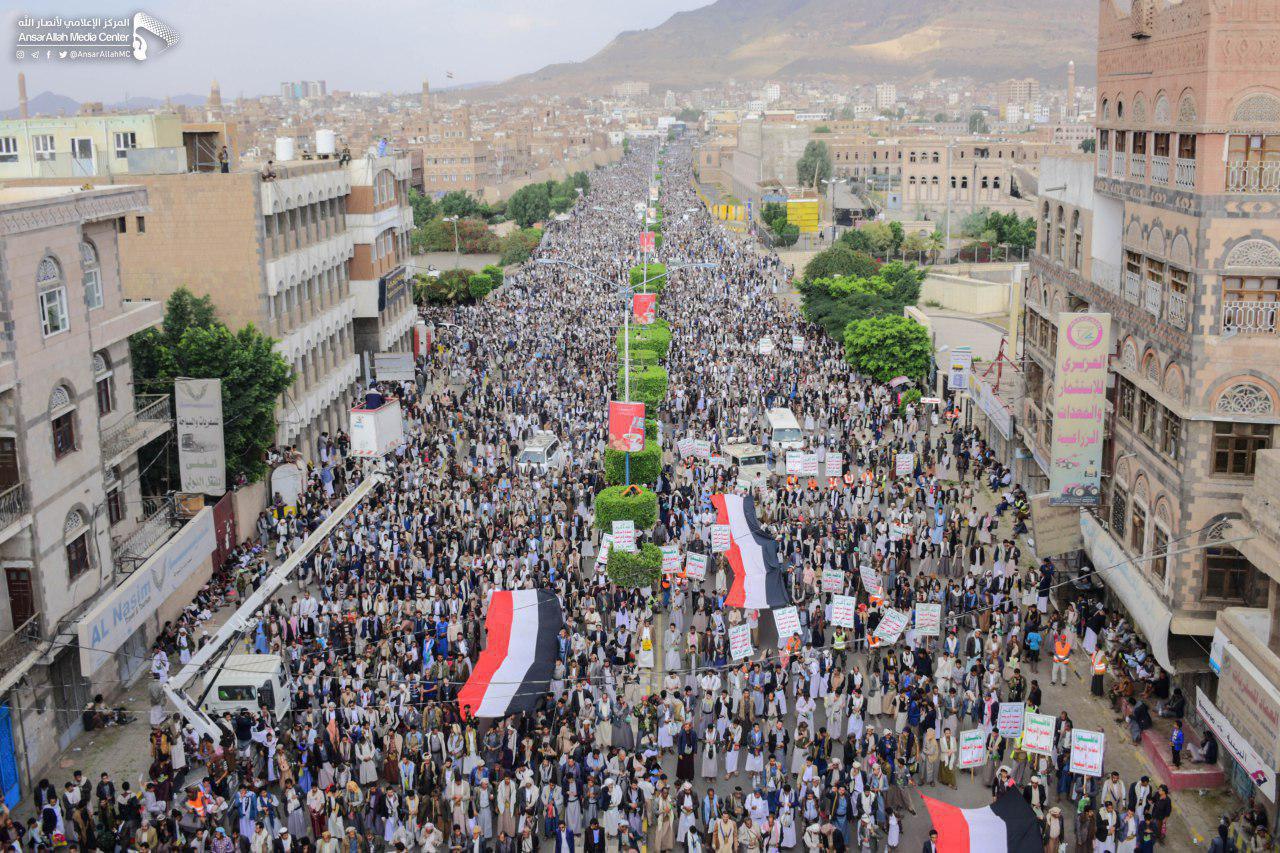 وندد المشاركون في المسيرة الجماهيرية بالحرب الاقتصادية التي تشن على أبناء الشعب اليمني من قبل تحالف العدوان الأمريكي السعودي الإماراتي والاستمرار في طباعة العملة لتجويع الشعب اليمني وتدمير اقتصاده.