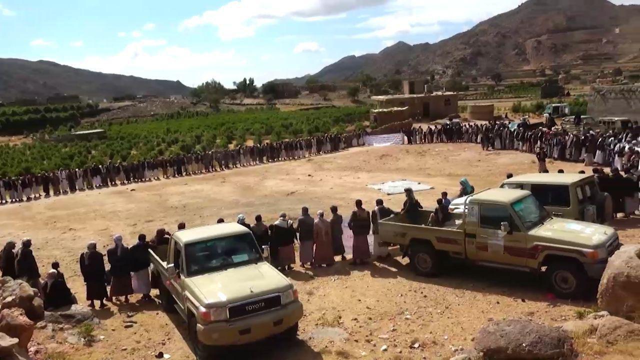 وأثناء عرض القافلة التي احتوت على عشرات من رؤوس الاغنام ، إضافة إلى مبالغ مالية كبيرة ، نفذ أهالي المنطقة وقفة احتجاجية بحضور شعبي استنكاراً لاستمرار جرائم العدوان الأمريكي السعودي الغاشم وكذلك العدوان الاقتصادي المتمثل بالحصار البحري والبري والجوي واستهداف العملة الوطنية ونهب ثروات البلد .