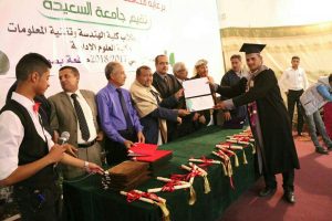 احتفلت جامعة السعيدة بذمار، اليوم، بتخريج دفعة جديدة في قسم الهندسة المدنية (انشاءات) كلية الهندسة وتقنية المعلومات وقسم المحاسبة كلية العلوم الإدارية والتي تضم 31 طالباً وطالبة.