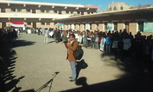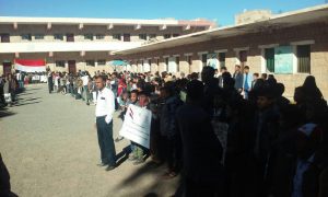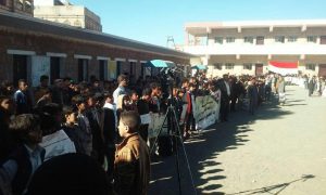 وقفة احتجاجية في مدرسة عمر بن عبدالعزيز بمدينة ذمار تنديدا بالعدوان والحصار.(صور)