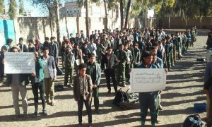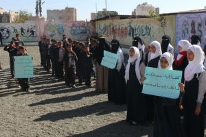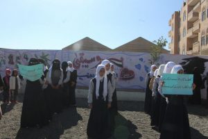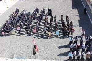 نظمت مدارس 22 مايو الأساسية وأجيال الغد الأهلية بمدينة ذمار صباح اليوم وقفتين احتجاجيتين تنديدا واستنكارا لجرائم العدوان السعودي الامريكي السافر والحصار الخانق والجائر على أبناء الشعب اليمني الذي يسعى العدوان لإحتلاله ونهب ثرواته.