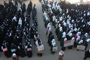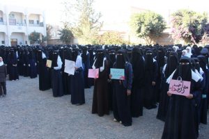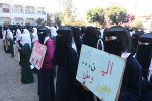 تتواصل الوقفات الاحتجاجية المنددة بالعدوان الغاشم والجرائم اليومية الممنهجة بحق اليمنيين في مدارس مديرية ذمار، حيث نظمت مدرسة الميثاق للبنات بمدينة ذمار وقفة احتجاجية بمشاركة المعلمات والطالبات تنديدا بتصعيد العدوان وعدم التزامه بالتهدئة حسب مخرجات مشاورات السويد.