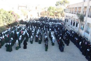 بدوره ألقى الأستاذ خالد القحطي نائب مدير مكتب التربية والتعليم بمديرية ذمار كلمة فضحت جرائم العدوان، أشار فيها إلى أن ما تم التوقيع عليه من قبل الوفد الوطني في السويد إنما هو دليل على أننا دعاة السلام وليس الاستسلام، شاكرا إدارة المدرسة وجميع الإداريات والمعلمات والطالبات على الصمود ومواصلة التعليم رغم إنقطاع المرتبات وقال: “هذا إن دل على شيء فإنما يدل على قوة وصلابة الشعب اليمني، وأن دور المرأة لا يقل عن دور الرجل”.