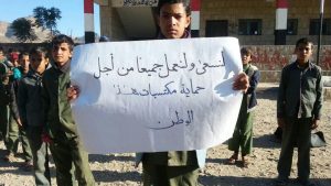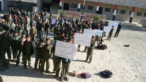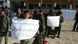تتواصل الوقفات الإحتجاجية المنددة بالعدوان في مدارس مديريات محافظة ذمار، حيث نظمت طالبات مدرسة ثربان الكراع في مديرية الحدا صباح اليوم وقفة احتجاجية وإذاعة صباحية تنديدا ورفضا واستنكارا لما تقوم به دول تحالف العدوان من عدوان سافر على بلادنا، استهدفت فيه الحجر والبشر، وسعت إلى تحطيم البنية التحتية واحتلال الجزر والموانئ، واطباق الحصار برا وبحرا وجوا.