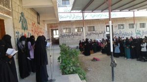 وفي الوقفة أكدت الطالبات على الصمود والثبات رغم كل الظروف، وطالبت المجتمع الدولي بوقف الحرب وفتح مطار صنعاء الدولي، ورفع الحصار على ميناء الحديدة وصرف رواتب الموظفين.