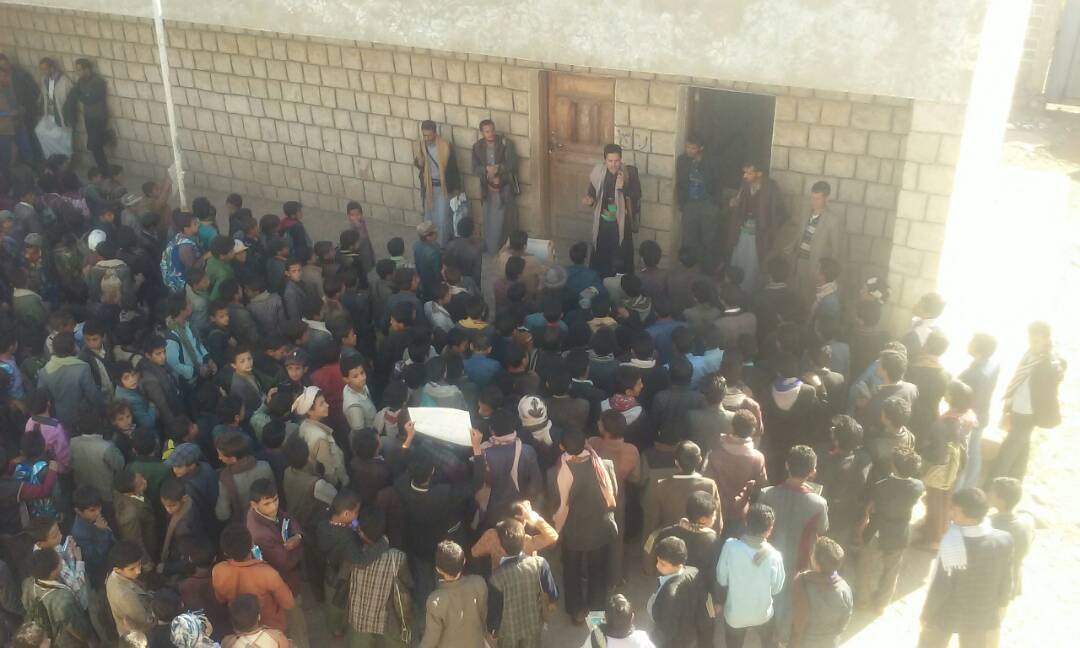 نظمت مدرسة ربيعة بني بحر بمديرية عتمة صباح اليوم وقفة احتجاجية بمشاركة المعلمين والطلاب تنديدا بتصعيد العدوان وعدم التزامه بالتهدئة حسب مخرجات مشاورات السويد التي جرت برعاية أممية الأسبوع الماضي.