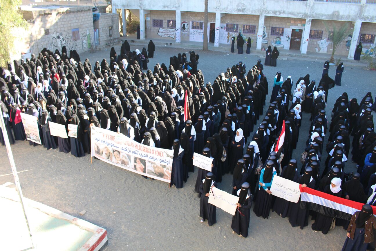 طالبات ذمار طالبن المجتمع الدولي بتحمل مسئولياته في ايقاف العدوان وفك الحصار واعادة
