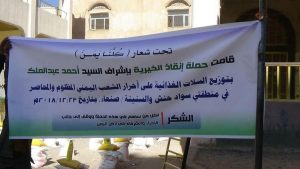 قدم أحرار لبنان والعراق وسوريا 300 اليوم سلة غذائية تحت شعار (كلنا يمن)، لبعض الأسر الأشد فقراً والتي تم توزيعها بمدرسة القميعة للمستهدفين من حي السنينة الشمالية وحي السنينة الجنوبية بمديرية معين/الأمانة.