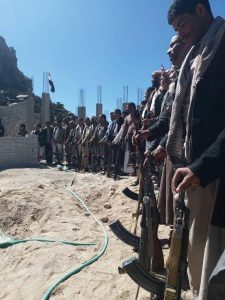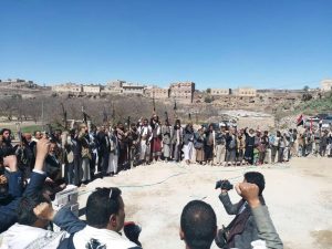 نظم أبناء وأهالي خربة افيق بمديرية ميفعة عنس محافظة ذمار صباح اليوم الخميس وقفة قبلية مسلحة تأييدا ومباركة لسلاح الجو المسير بتنفيذ هجوماً على تجمعات الغزاة والمرتزقة في قاعدة العند الجوية بـلحج.