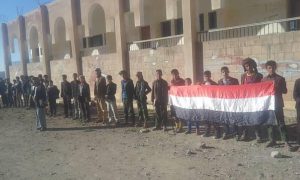وفي مديرية الحداء، أقامت مدرسة الشهيد البخيتي وقفة إحتجاجية، صباح اليوم، تنديدا بالعدوان الغاشم والحصار الجائر على اليمن وما يرافق ذلك من كوارث على المستوى الإنساني.