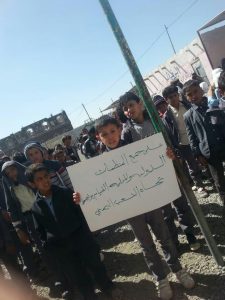 حيث أقامت مدرسة عبد العزيز عبد الغني ومدرسة السعيدة الأهلية وقفتان احتجاجيتان ضد العدوان السعودى الأمريكي، منددة بإستمرار العدوان السعودى الأمريكي على بلادنا وحصاره الجائر.