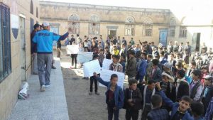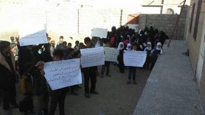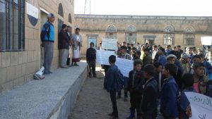 نظمت مدرسة باب الفلاك بمديرية عنس صباح اليوم وقفة احتجاجية تدين دول تحالف العدوان بما تقوم به من جرائم ضد الشعب اليمني.