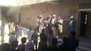 أقام مجمع الوحدة بحمير بمديرية ضوران، صباح اليوم، وقفة احتجاجية ضد العدوان الغاشم واستهدافه للعملية التعليمية والتربوية واستنكارا للموقف المخزي والمخجل من قبل حكومة العملاء والفار هادي ورفض التطبيع مع الكيان الصهيوني الغاصب للارض العربية في فلسطين المحتلة.