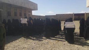 ورفعت خلال الوقفة الشعارات المنددة والمناهضة للعدوان الغاشم علي بلادنا، واستنكرت الصمت الدولي المخزي والمخجل لما يتعرض له الشعب اليمني من حرب ابادة تستهدف المدنيين الابرياء.
