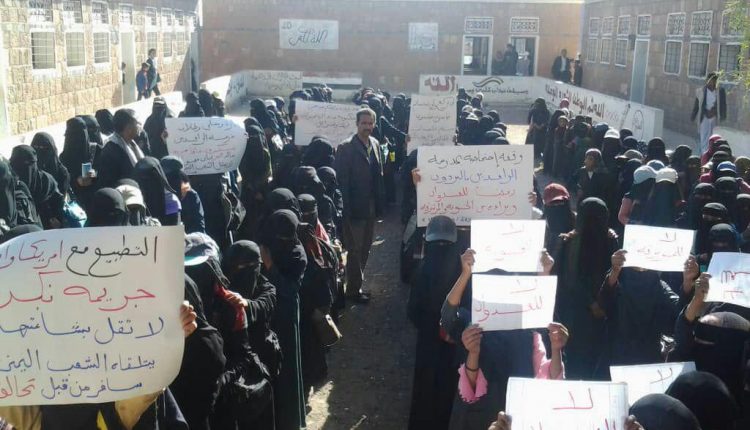 وفي مديرية وصاب العالي،إقيمت وقفه احتجاجية بمدرسه الوده ببني الحداد نددت بالعدوان الغاشم على بلادنا ورفضا للتطبيع مع حكومة العدو الصهيوني وكذلك إحتفاءاً بمناسبة ميلاد الزهراء عليها السلام يوم المرأه المسلمه.