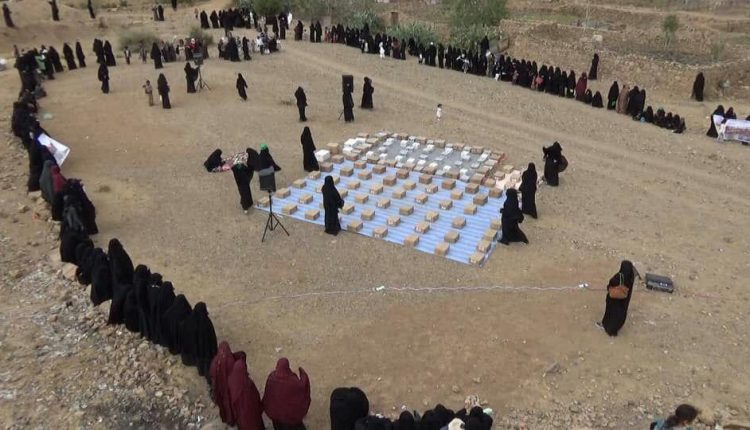 حرائر بني حشيش يقدمن قافلة غذائية دعما لنازحي مديرية كشر بحجة