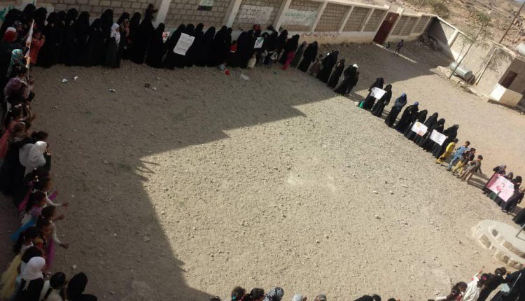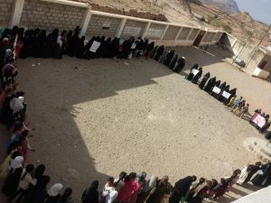 وفي مديرية عنس أقامت الهيئة النسائية الثقافية العامة وقفة الصمود بمنطقة الوشل.