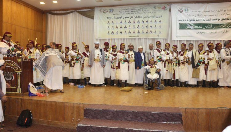 نظمت الهيئة العامة للزكاة بالتعاون مع الجمعية اليمنية لرعاية وتأهيل المكفوفين المركز الرئيسي، اليوم الأربعاء، عرساً جماعياً لـ 80 عريسا وعروسا من المكفوفين بمحافظات لحج، حضرموت، تعز، إب، الحديدة، ذمار، حجة والمحويت، تحت شعار تحت شعار ” معا لنكمل نصف دينهم .. الزكاة في مصارفها”.