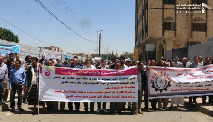 وأشار إلى أن المعتصمين من النقابات والمنظمات الإنسانية وتجار ووكلاء وأغلب ممثلي الجهات الخدمية، مستمرون في اعتصامهم حتى يتم الإفراج عن السفن النفطية وإيقاف استهداف منشآت ومرافق شركة النفط، باعتبارها خدمية لكل فئات وشرائح المجتمع اليمني دون استثناء.