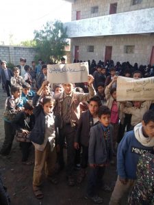 المعلمين والطلاب والطالبات في الوقفتين ادانوا واستنكروا كل جرائم العدوان الصهيوسعودي أمريكي وآخرها الجريمة المروعة التي ارتكبتها، طائرات تحالف البربري السعودي الأمريكي، والتي استهدفت طالبات مدرسة الشهيد الراعي للبنات بحي سعوان مما أدى الى استشهاد 13 طالبة و جرح 87 اخريات في حصيله غير نهائية؛ وكذلك جريمة الاختططاف في التحيتا وكل الجرائم المماثلة لهذه الجرائم.