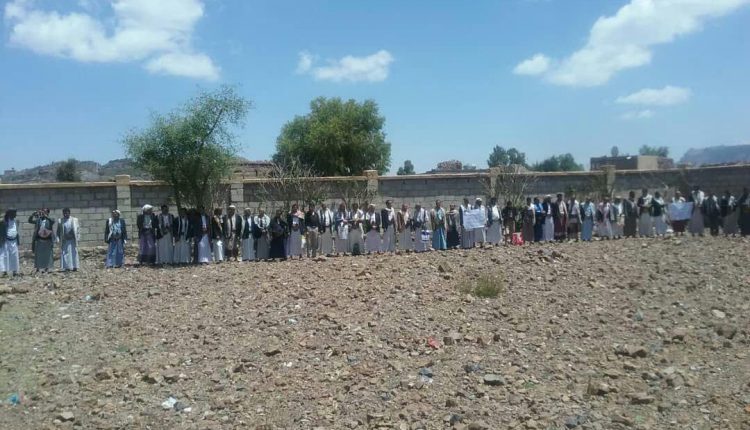 وقفة احتجاجية لمنتسبي القطاع التربوي بمديرية جبل الشرق بذمار؛ استنكارا لجريمة العدوان بحق طالبات مدرسة الراعي. (صور).