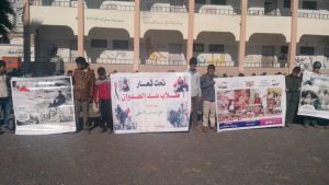 كما استنكرت الوقفات استهداف طيران العدوان السعودي الاماراتي الامريكي للمنطقة السكنية بسعوان وسط العاصمة صنعاء جوار مدرسة الراعي والتي راح ضحيتها عدد من الشهداء من الطالبات والمدنيين.