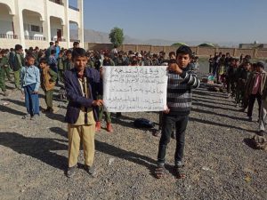وقفتان إحتجاجيتان بمدرستي 7 يوليو بطلحامة وخالد بن الوليد بمديرية جهران بذمار. (صور).