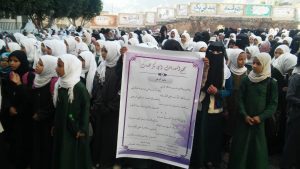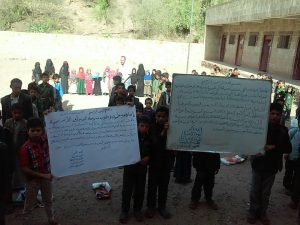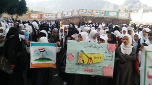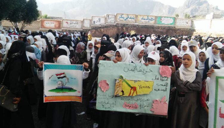 وقفات احتجاجية بمدراس مديرية عتمة بذمار ؛تحت شعار “العدوان السعودي الامريكي يقتل أبنائنا في المدارس”.(صور).