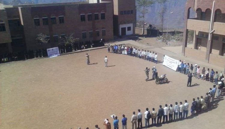 وأشاد مدير المديرية أحمد الولي بدور القطاعات الأكاديمية والتربوية لمناهضة العدوان من خلال إقامة الفعاليات الإحتجاجية المعززة للصمود اليمني في وجه قوی العدوان.