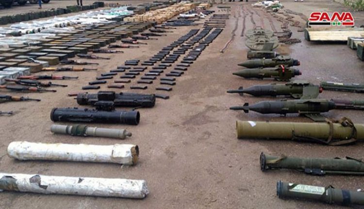 وأفاد المصدر السابق في المحافظة أن مستودعات الأسلحة التي ضبطتها القوى الأمنية السورية تضم قذائف (آر بي جي) وقنابل ورشاشات متوسطة وقناصات وبنادق آلية وقواعد إطلاق قذائف هاون ومنصات إطلاق صواريخ مضادة للدروع وصواريخ موجهة بعضها أمريكي وإسرائيلي الصنع، إضافة إلى منظومة اتصالات لاسلكية وكميات من الأدوية والذخائر المتنوعة.