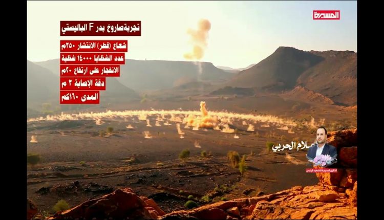 على لسان العميد سريع كشفت القوة الصاروخية للجيش واللجان الشعبية عن دخول صاروخ ” بدر_إف ” خط المواجهة، مزيحة بذلك الستار عن منظومة صاروخية باليستية جديدة ذات فاعلية تدميرية كبيرة مطلع عام خامس من معركة النفس الطويل، مستعرضا عمليات تجريبية وميدانية للصاروخ الباليستي الجديد لمن يساوره شك أو يختلجه إنكار، ولعل أبرز ما في الأمر هو حضور روح الرئيس الشهيد في مرحلة العزيمة والبأس الشديد، كون الإفصاح عن هذا السلاح يأتي تزامناً مع الذكرى الأولى لاستشهاده، وبعد اقل من شهر من وعد السيد القائد عبدالملك الحوثي حفظه الله في امتلاك بلادنا تقنيات متقدمة لتطوير القدرة العسكرية.