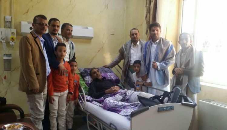 المكتب التنفيذي لاتحاد الإعلاميين اليمنيين يزور رئيسه الجريح بسبب العدوان السعودي الأمريكي