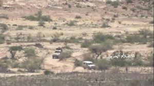 ووثقت المشاهد لحظة تدمير وإحراق المجاهدين طقما للمرتزقة عليه مدفع رشاش عيار 24 بسلاح مناسب.
