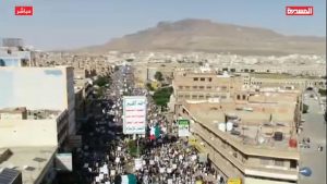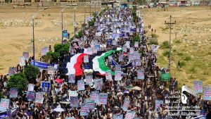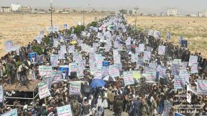 بداية من مسيرة العاصمة صنعاء أكد عضو المجلس السياسي الأعلى أحمد الرهوي، استمرار الشعب اليمني في مواجهة العدوان حتى تحقيق النصر ودحر الغزاة والمحتلين من أرض اليمن.
