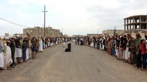 وأكد الحاضرون في الوقفة إستمرارهم في مواجهة العدوان السعودي الامريكي بكل الوسائل والإمكانيات والإندفاع الكامل الى جبهات الشرف والبطوله وتعزيز لواء الصماد 3 بالشباب المجندين.