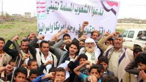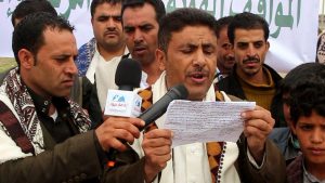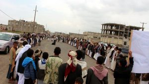 نظم أبناء القطاع الجنوبي لمدينة ذمار اليوم بعد صلاه الجمعه بباحة مسجد الخليل إبراهيم وقفة إحتجاجيه لمساندة الجيش واللجان الشعبية وإستنكاراً للجرائم التي يرتكبها طيران العدوان السعودي الامريكي.