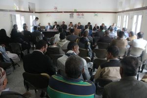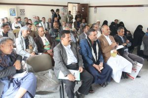 من جانبه نائب مدير التربية ووالتعليم محمد حسن الهادي إستعرض الصعوبات والمعوقات التي يواجهها قطاع التربية والتعليم بالمحافظة إيزاء العدوان السافر والحصار الجائر على االشعب اليمني.