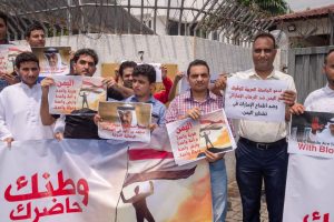 وعبر المحتجون عن غضبهم جراء ما قامت به دولة الإمارات عن طريق ميليشياتها في المحافظات الجنوبية من سيطرة على مرافق الدولة.