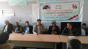 بدوره مدير إدارة الرقابة والتفتيش بمكتب التربية بالمحافظة علي صالح العمدي أكد في كلمته أهمية التعليم في بناء الأوطان والانتصار على العدوان بالقلم والسلاح باعتبار الجبهة التعليمية النسق الثاني لمواجهة العدوان.